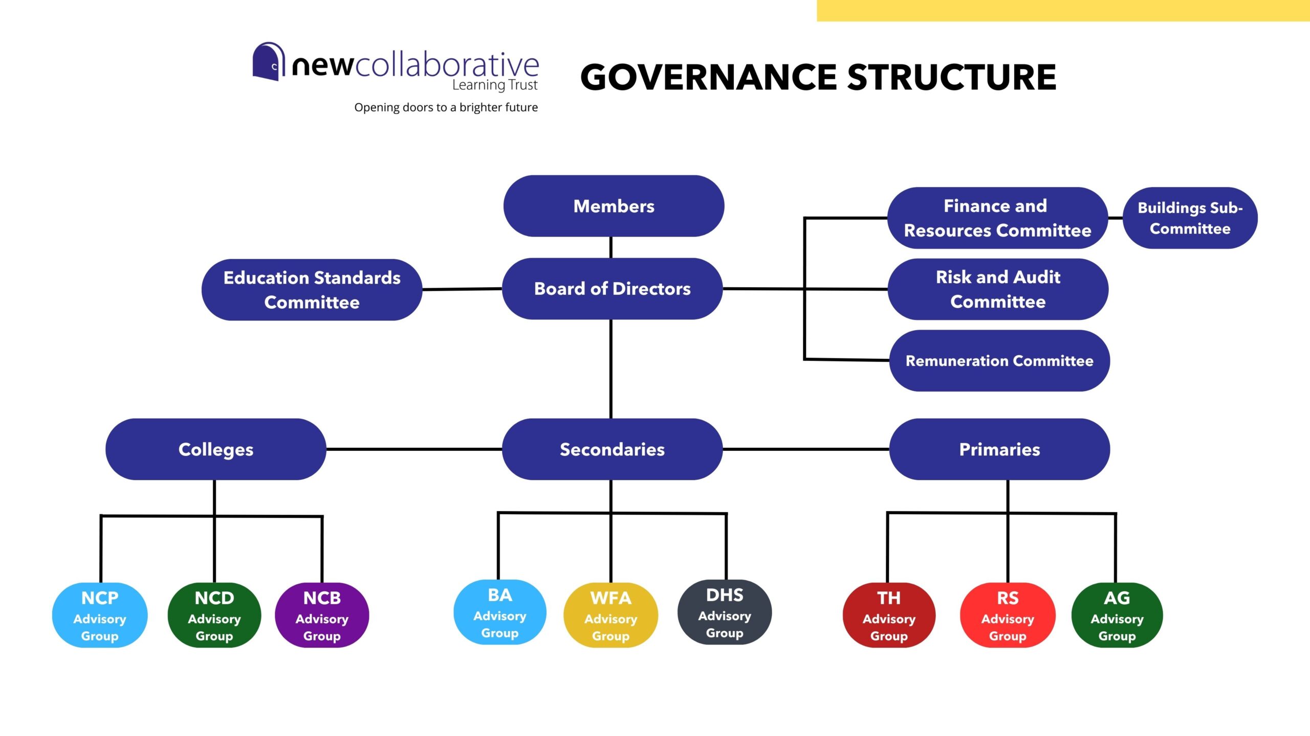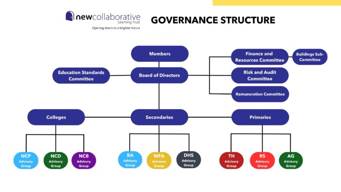 All Academy Trusts have two layers of governance – Members and Directors. Some (like NCLT) choose to have a third, i.e., Advisory Groups.